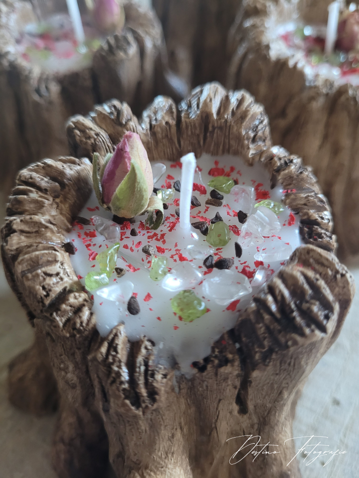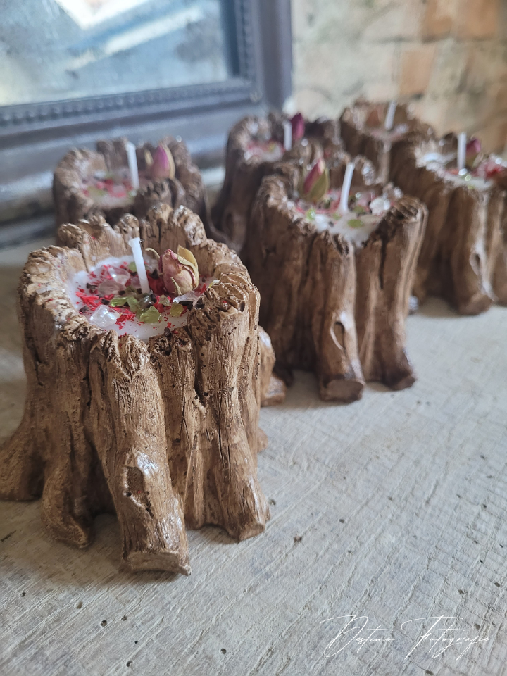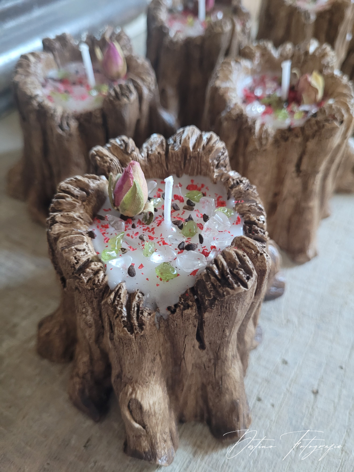 Prachtige handgemaakte boomstammetjes gevuld met geurende kokos!