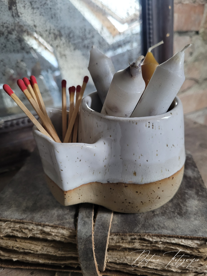 je kan je theezakje in het bakje vooraan plaatsen of je kunt hem gebruiken om je kaarsen en lucifers erin te bewaren!