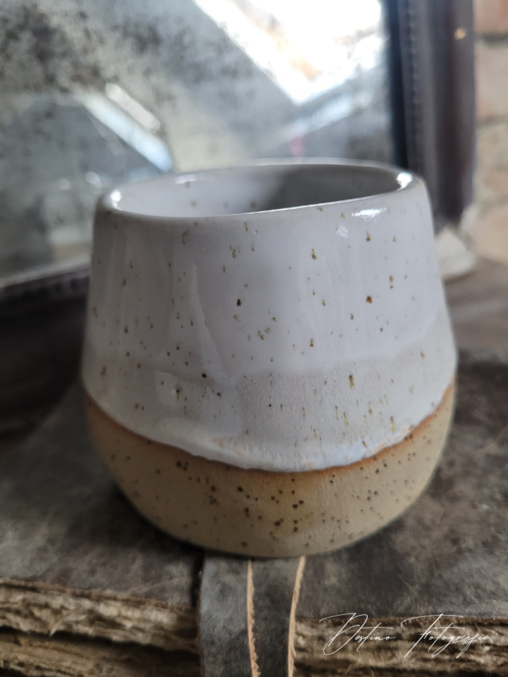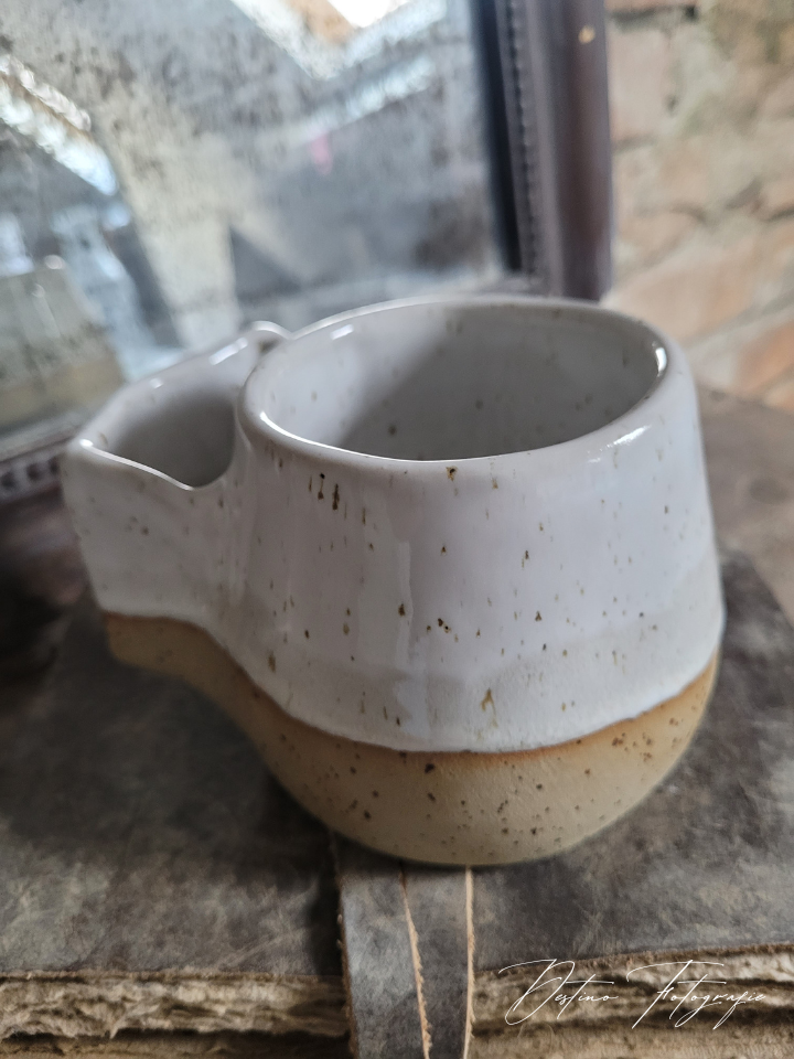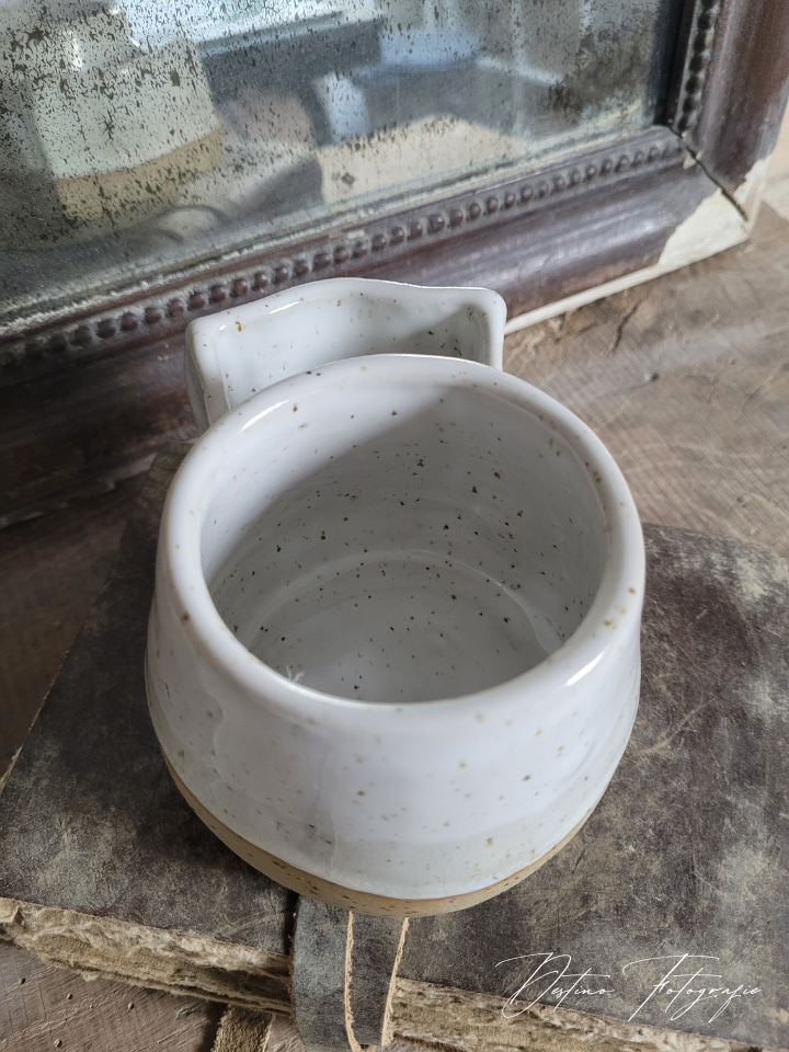 doorsnede mok 8 cm, hoogte is 7,5 cm, met bakje is 12,5 cm