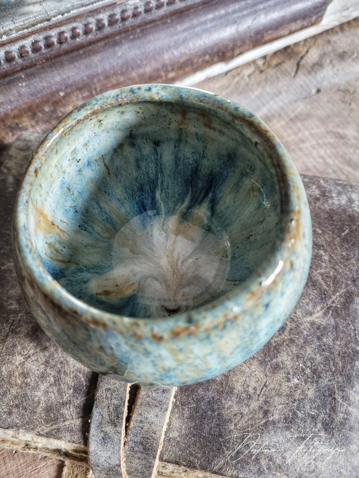 prachtig handgemaakt ritual mokje van keramiek.