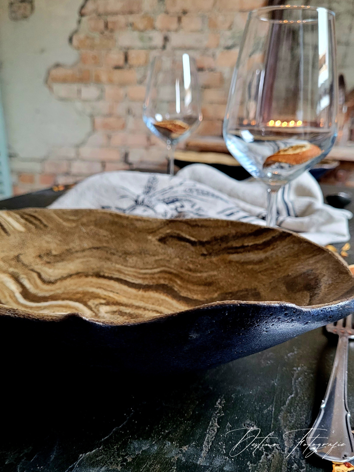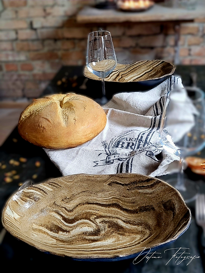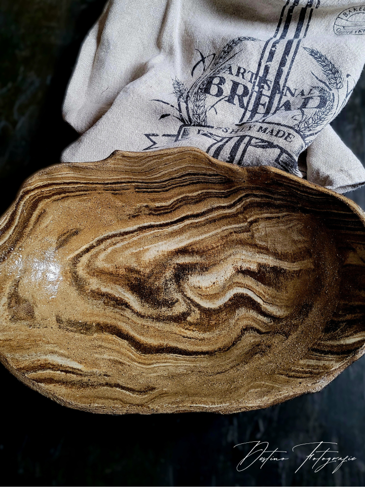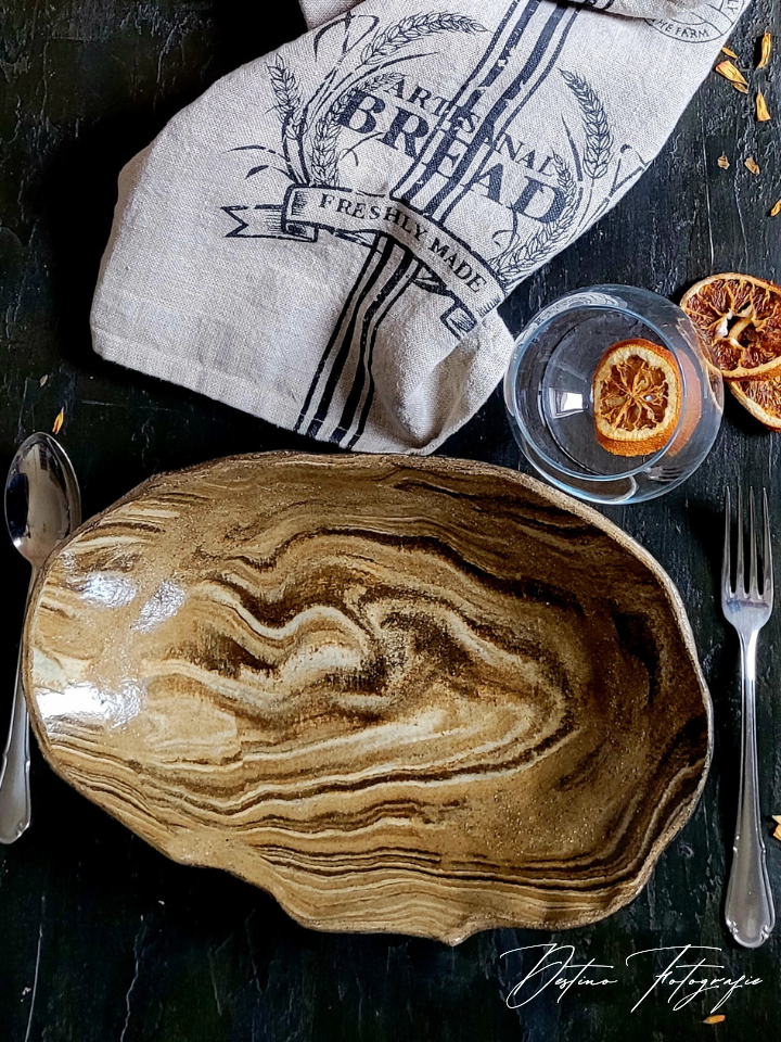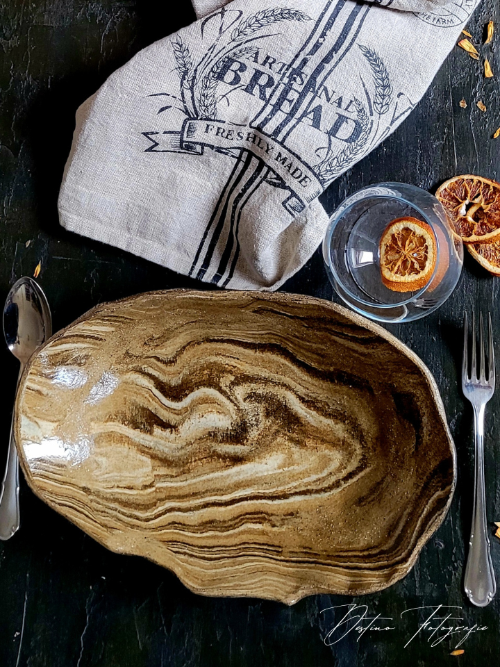 Prachtige handgemaakte eetborden van keramiek met houtlook.