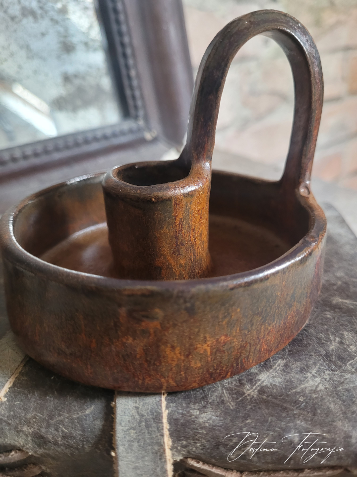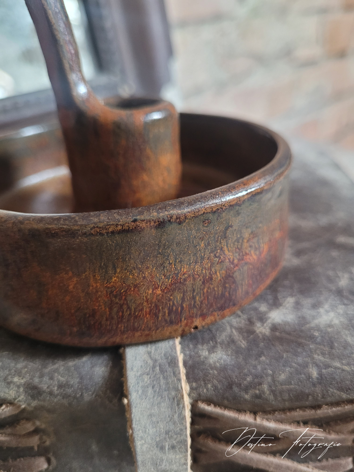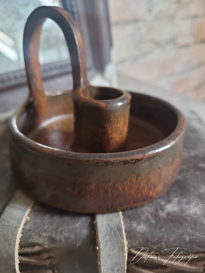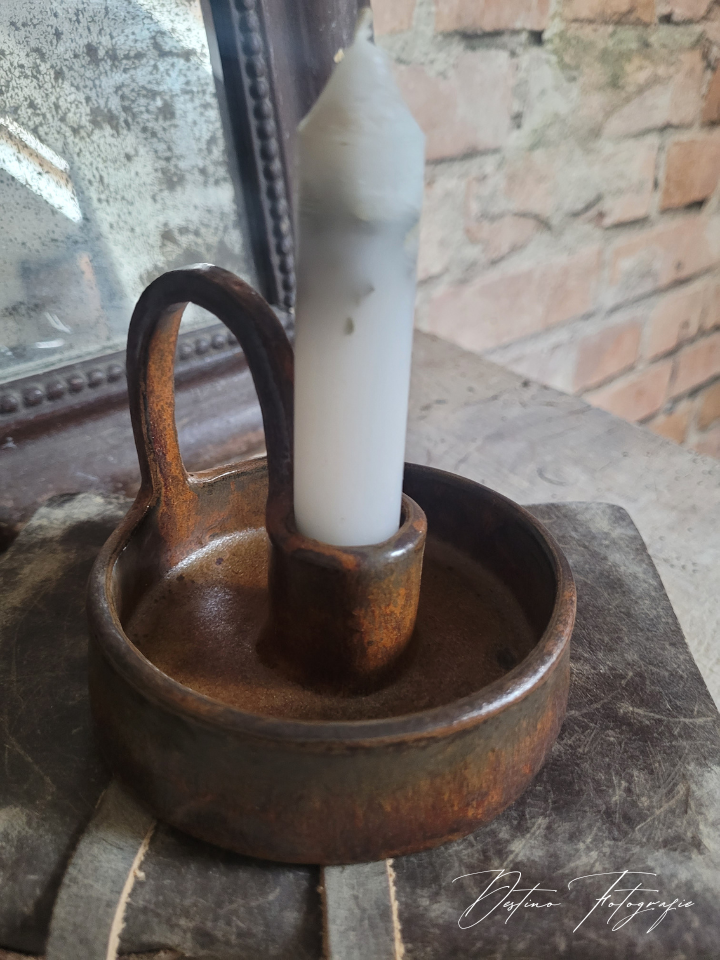 Prachtige handgemaakte kaarsenkandelaar met een stoer glazuur.